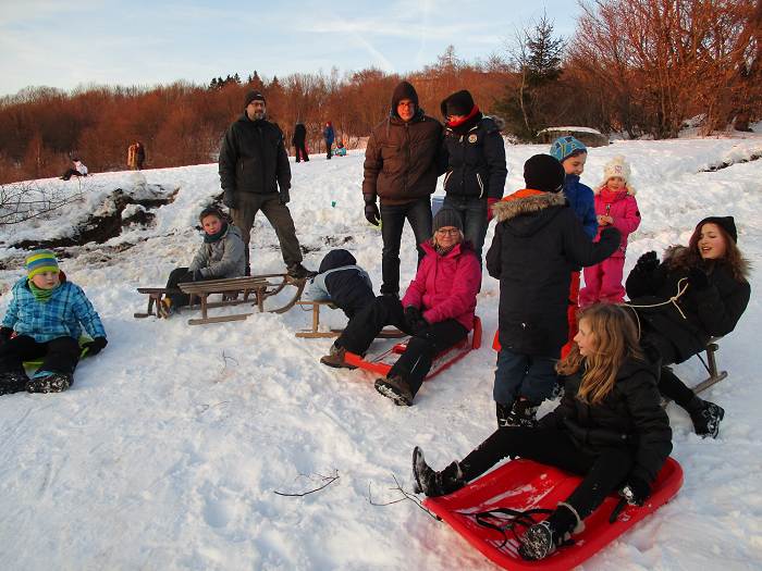 Die Möglichkeiten für das Sonntagvormittagsprogramm wurden von Teilnehmern und Betreuern intensiv diskutiert. Schlussendlich teilte sich die Gruppe auf in Schlittschuhlaufen in Bad Sachsa und Rodeln in Hohegeiss. Das bescherte naturgemäß einige Transportfahrten, aber letztendlich konnten sich alle wunschgemäß noch einmal richtig auf der Eisfläche, bzw. auf der Rodelpiste austoben. Mittlerweile war es diesig geworden, es hatte über Nacht leicht geregnet und so