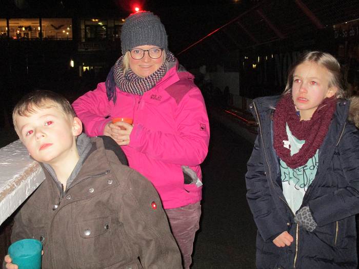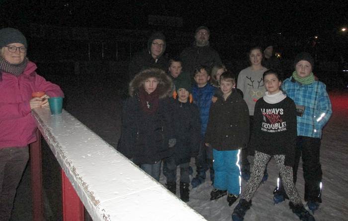 Zurück ins Quartier stärkten sich alle beim warmen Essen und voller Tatendrang ging es zum nächsten Event: Eisdisco in Braunlage. Hier dreht sich alles um die richtigen Schlittschuhe und um die Catering-Crew an der Bande(Kirsten und Herm), die die kleinen und großen Eiskunstläufer mit Tee und Keksen versorgten.