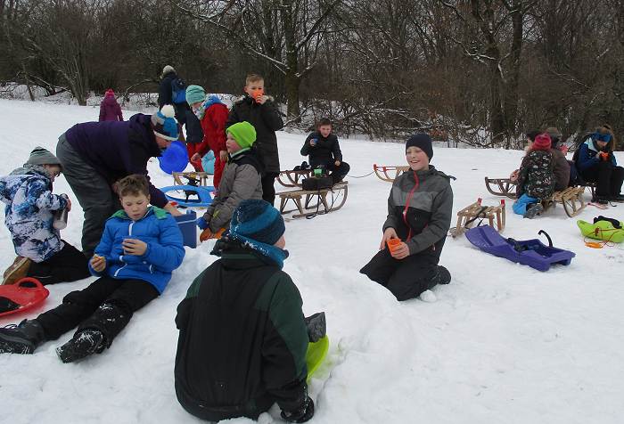 Doch dann ging es endlich zum langersehnten Schlittenfahren nach Hohegeiß. In der Höhenlage von 650 Meter trafen wir ideale Schneeverhältnisse für das Rodeln an. Tee und Kekse wurden auf einem Schlitten mitgeführt und erfreuten in der Rodelpause.