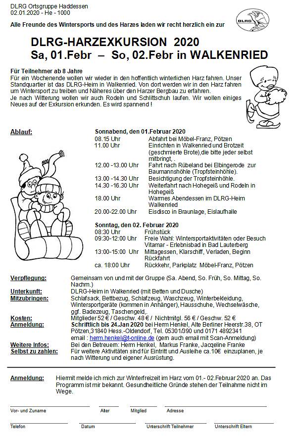 Pünktlich um 08.15 Uhr trafen sich am 01.Februar 2020 die 7 Teilnehmer und die 3 Betreuer in Pötzen bei 'Möbel-Franz' um nach kurzem Kennenlernen und notwendiger Einweisung die Fahrt in den Harz anzutreten. Da im Harz kein Schnee zum Rodeln war, blieb die Zahl der Teilnehmer überschaubar. Aber keiner sollte sich vergebens angemeldet haben und wir hofften ja noch auf weitere Teilnehmer...
