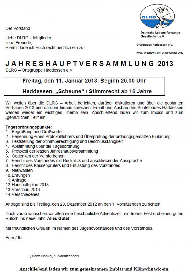 Jahreshauptversammlung der DLRG-Ortsgruppe Haddessen
