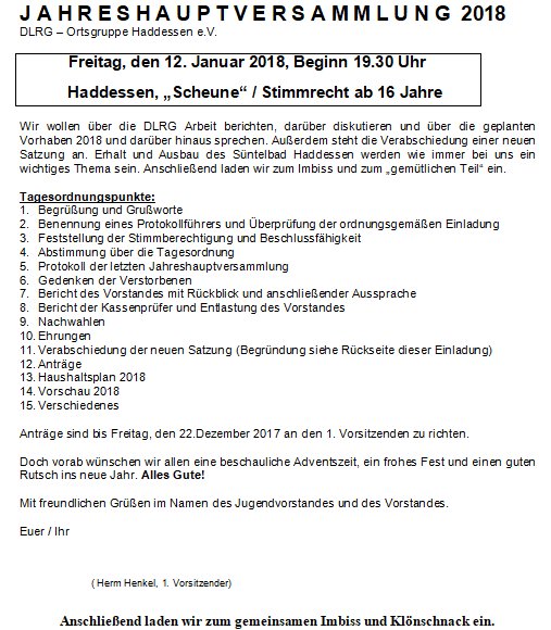 Jahreshauptversammlung der DLRG-Ortsgruppe Haddessen