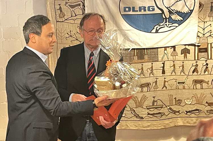 Zu dieser Ehrung waren auch Kameradinnen und Kameraden aus den Anfängen der DLRG-Ortsgruppe Haddessen erschienen, unter anderem Ralf Schulte, der ebenfalls an Ereignisse und besondere Situationen in diesen 5 Jahrzehnten erinnerte.