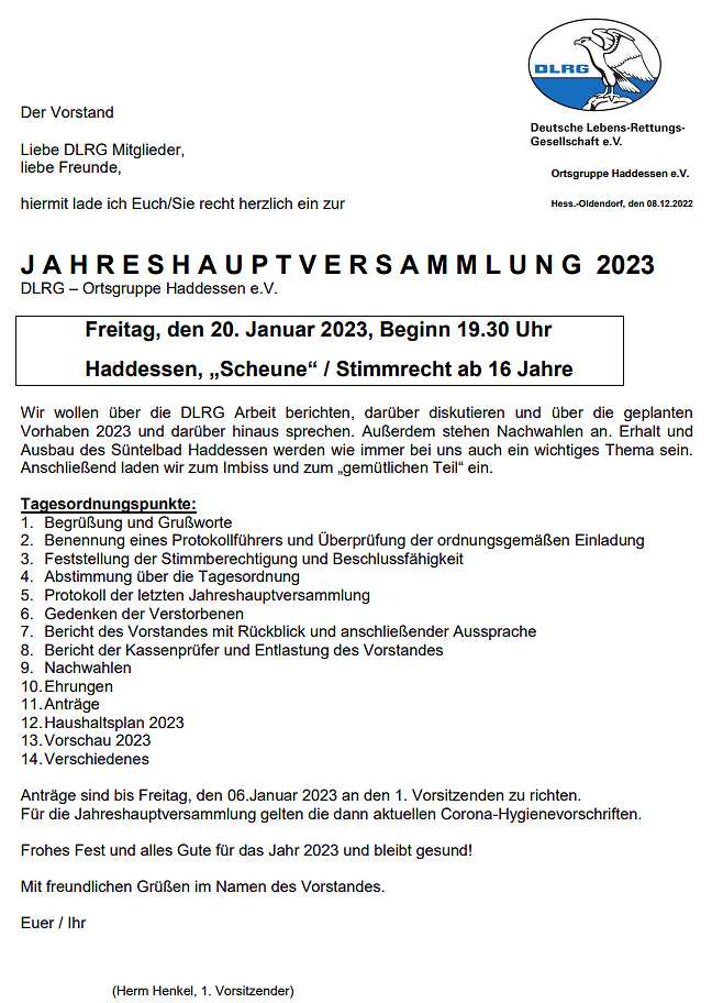 Jahreshauptversammlung der DLRG-Ortsgruppe Haddessen