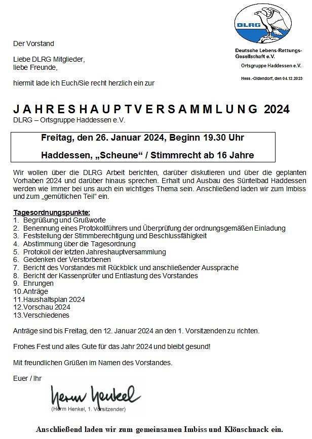 Jahreshauptversammlung der DLRG-Ortsgruppe Haddessen
