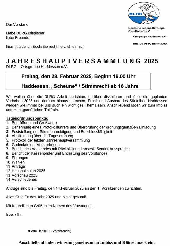Jahreshauptversammlung der DLRG-Ortsgruppe Haddessen