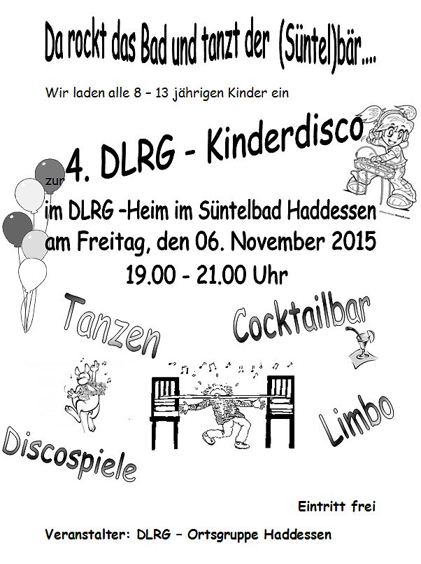 Bestimmt sieht man sich bei der einen oder anderen Veranstaltung wieder und kann jetzt schon wieder Pläne schmieden und sich verabreden mit Freunden und Freundinnen. Und die gute Nachricht ist: Am 21.Oktober 2016 soll die 5.Kinderdisco im DLRG-Heim starten.