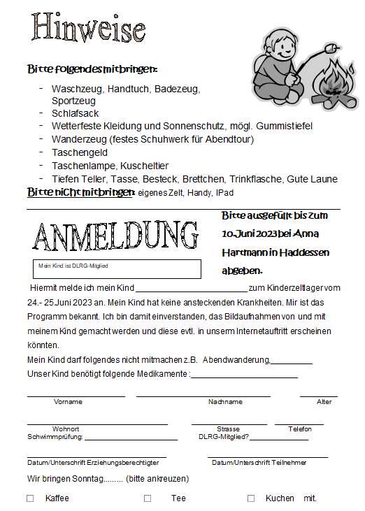Tolles Kinderzeltlager der DLRG-Ortsgruppe Haddessen im JBF-Centrum auf dem Bückeberg bei Obernkirchen vom 24.-25.Juni 2023
