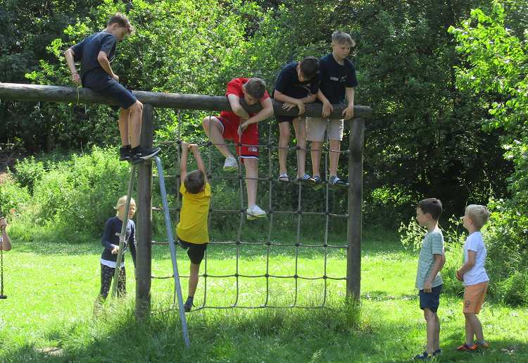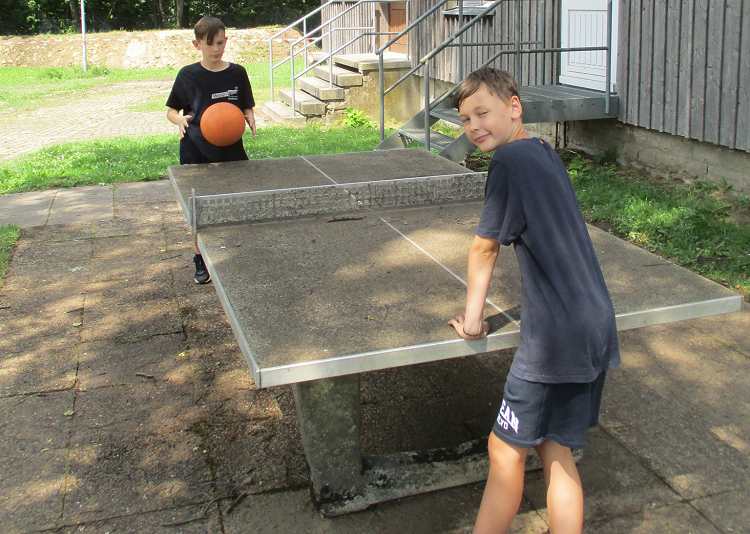 Das Wetter hielt und es war eine tolle Stimmung. Alle schafften die Herausforderungen. Klar, das nach solch anstrengenden und aufregenden Aufgaben das Mittagessen mundete. Leider kam nun schon der Moment des Einpackens und Aufräumen der Zimmer, aber wer dachte, das wars, der hatte sich getäuscht. Die letzte Stunde vor dem gemeinsamen Kaffee gehörte wieder dem beliebten Völkerballspiel.