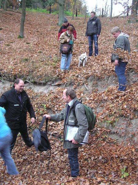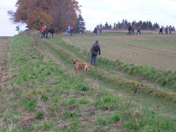 Nach diesem Rundgang ging es an den Start zur Kohlwanderung. Herm und seine Helfer hatten alles perfekt organisiert. Selbst beim Wettergott hatten sie ein offenes Ohr gefunden, so dass wir bei bestem Wanderwetter durch Feld und Wald wandern konnten. Auch für das leibliche Wohl wurde an den Verpflegungspunkten bestens gesorgt. Unterwegs galt es einige kleine Fragen zu beantworten. Als besondere Attraktion hatte Herm sich einen unwegsamen Steilabstieg ausgesucht, den alle problemlos gemeistert haben. Der Weg von Pötzen nach Haddessen zur Scheune wurde mit Fackelbeleuchtung zurückgelegt. In der Scheune wurde uns ein ausgezeichneter Grünkohl serviert. Nach dem Essen gab es eine unerwartete Siegerehrung. Herm hatte zwischendurch die Fragebogen ausgewertet und die Gewinner ermittelt. Die Mitlieder der DLRG Bückeburg e.V. waren die erfolgreichste Ortsgruppe und konnten die meisten Preise entgegennehmen.