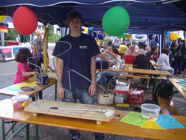 Die Begeisterung war am Anfang in den beiden Ortsgruppen nicht besonders groß, denn noch eine Veranstaltung mehr, bedeutet auch Mehrarbeit und zusätzlichen organisatorischen Aufwand. Aber es hat sich gelohnt, darin sind sich Birgit Ariessen�Maduka und ich einig. Wir konnten unsere Arbeit ausschnittsweise präsentieren und erklären, am Stand der DLRG-Kameraden aus HO waren Seilkunde und Puzzle gefragt, wir von der OG Haddessen waren mit Erbsendreschmaschine, Klingeldrahtspiel, Pedalos und Stelzen und Schminktisch mit dabei.