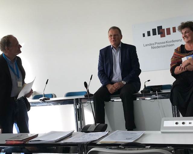 Nach dieser eindrucksvollen Parlamentsdebatte hatten wir noch Gelegenheit, mit Landtagsabgeordneten 1 Stunde zu sprechen. Zu diesem Termin waren alle Abgeordneten unseres Wahlkreises geladen worden, erschienen waren Dirk Adomat von der SPD und Anja Piel von den Grünen, beide zufällig wohnhaft in Fischbeck.