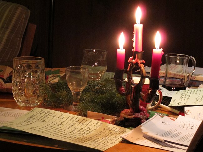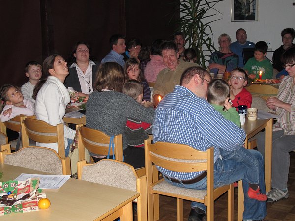 Es ist einfach die unglaublich gemütliche Atmosphäre, die uns Aktive alljährlich wieder zur Nikolausfeier in die 'Scheune' in Haddessen zieht: die festlich dekorierten Tische mit den Tannenzweigen, den brennenden Kerzen und den bunten Tellern mit Keksen und Süßigkeiten und den Äpfeln, den Mandarinen und den Nüssen.