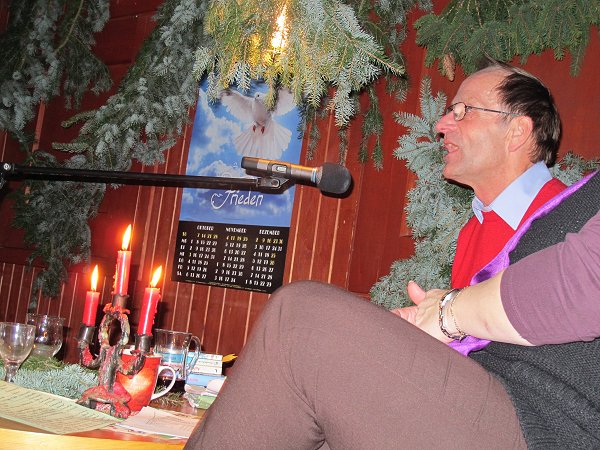 Viele Weihnachts- und Adventslieder werden unter der Begleitung des Posaunenchor Fischbeck, Leitung Dirk Stock oder unter Gitarrenbegleitung von Corinna Jahn, Rohden, gesungen. Manch lustige Gedicht vom Nikolaus, von der Weihnachtmaus und der heimlichen Adventszeit stimmt auf den Besuch des Nikolaus ein. Und manche nachdenkliche Geschichte, wie zum Beispiel von 'Timm und seinem Schlitten im ersten kargen Schnee', oder 'von dem Apfel, der gar nicht zufrieden ist mit seinem Los aber im nächsten Jahr als Sämling weiterlebt und heranwächst', oder von 'Pelle, der nach Herzhausen auszieht, weil sein Vater ihn unschuldigerweise einer Freveltat bezichtigt' stimmt auf Weihnachten ein.