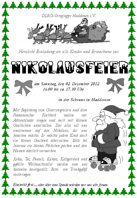 Übrigens: Im Jahre 2013 darf der Nikolaus gerne wiederkommen nach Haddessen in die Scheune.