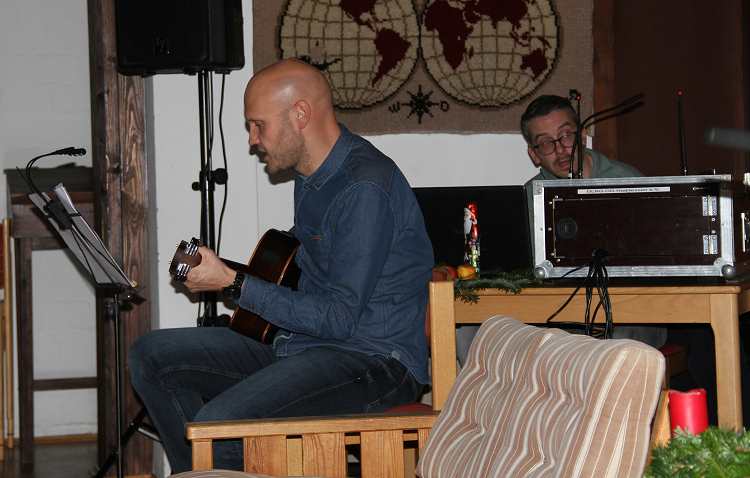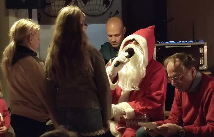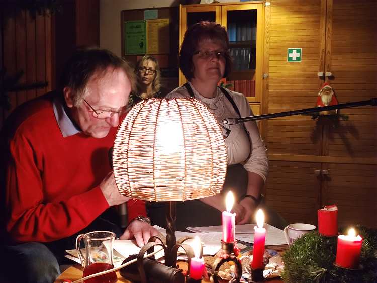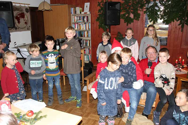 So sollte es doch noch eine Weile dauern bis der Nikolaus zu den Kindern in die 'Scheune' kam und bis dahin wurde, nachdem die ersten beiden Kerzen auf dem Adventskranz, der auf dem Vorlesetisch stand, angezündet worden waren, die Zeit genutzt, um Lieder zu singen, Geschichten zu hören oder sich mit adventlichen und winterlichen Gedichten auf die nächsten Wochen einzustimmen. Die Gäste in der 'Scheune' konnten sich an Gedichten und Geschichten von Yvonne Passenheim und Herm Henkel erfreuen und natürlich von Herzenslust bei den vielen Adventsliedern mitsingen. Musikalisch begleitet wurden die Besucher von Stefan Ludes auf der Gitarre. Nach kräftigen mehrmaligen Rufen kam auch der Nikolaus in die warme 'Scheune'. Das war auch dringend nötig, hatte doch der gute alte Mann seinen Weg in diesem Jahr auch wieder über den hohen waldigen Süntel nehmen müssen.