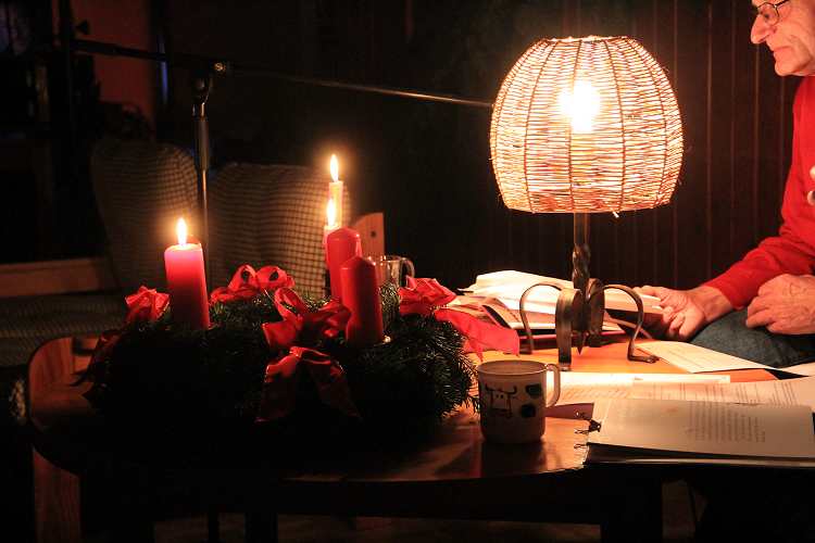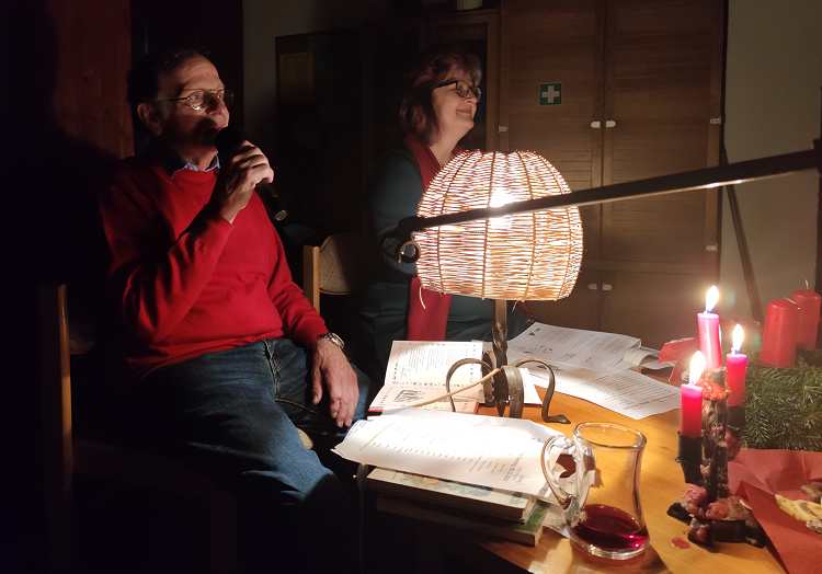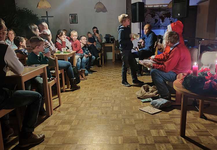 Doch so sollte es doch noch eine Weile dauern bis der Nikolaus zu den Kindern in die 'Scheune' kam und bis dahin wurde, nachdem die erste Kerze auf dem Adventskranz, der auf dem Vorlesetisch stand, angezündet worden war, die Zeit genutzt, um Lieder zu singen, Geschichten zu hören oder sich mit adventlichen und winterlichen Gedichten auf die nächsten Wochen einzustimmen. Die Gäste in der 'Scheune' konnten sich an Gedichten und Geschichten von Yvonne Passenheim und Herm Henkel erfreuen und natürlich von Herzenslust bei den vielen Adventsliedern mitsingen. Musikalisch begleitet wurden die Besucher von Stefan Ludes auf der Gitarre. Nach kräftigen mehrmaligen Rufen kam auch der Nikolaus in die warme 'Scheune'. Das war auch dringend nötig, hatte doch der gute alte Mann seinen Weg in diesem Jahr auch wieder über den hohen waldigen Süntel nehmen müssen.