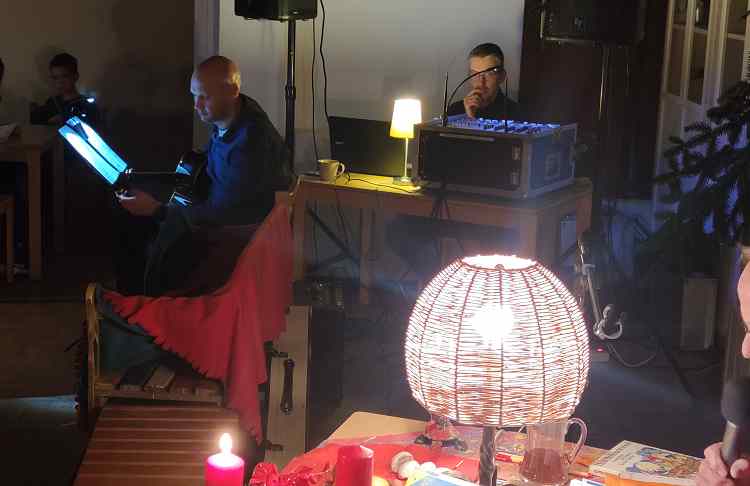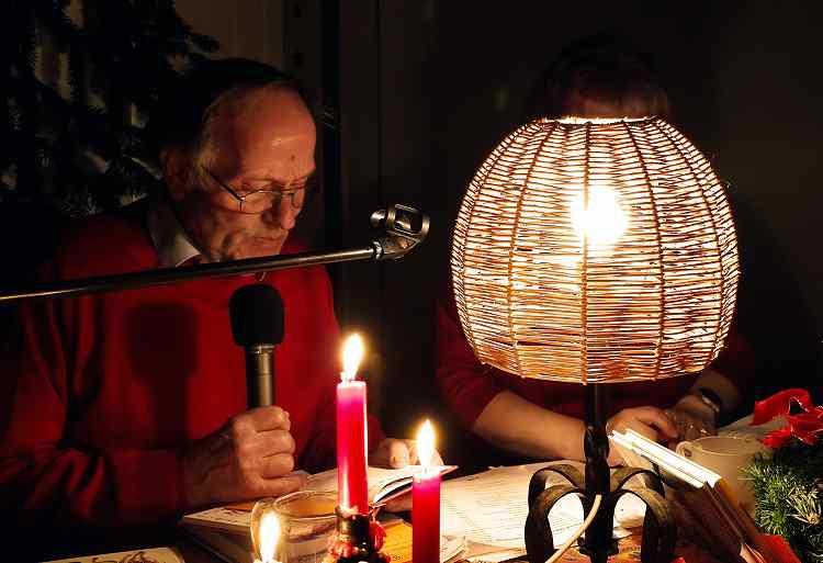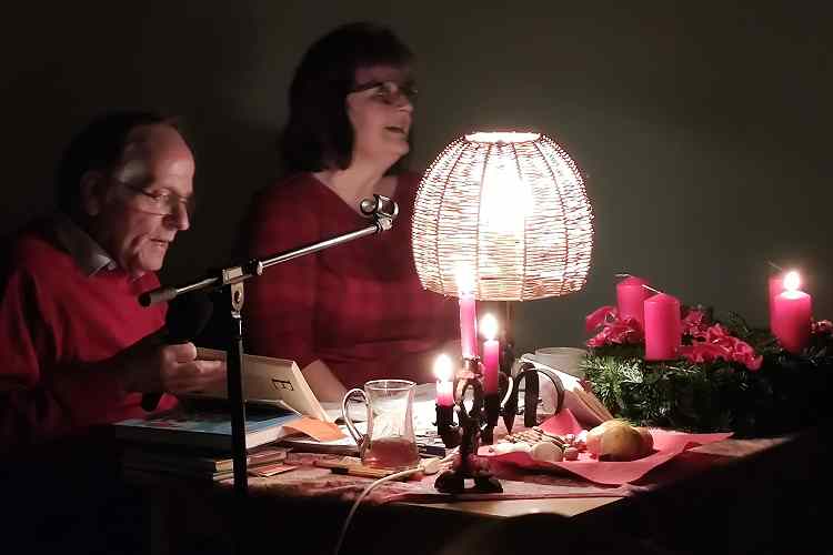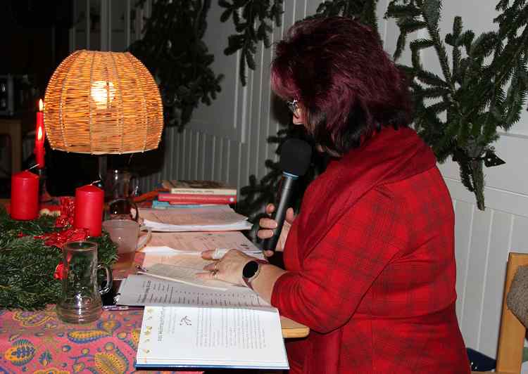 Doch so sollte es doch noch eine Weile dauern, bis der Nikolaus zu den Kindern in die „Scheune“ kam, und bis dahin wurde, nachdem die erste Kerze auf dem Adventskranz, der auf dem Vorlesetisch stand, angezündet worden war, die Zeit genutzt, um Lieder zu singen, Geschichten zu hören oder sich mit adventlichen und winterlichen Gedichten auf die nächsten Wochen einzustimmen. Die zahlreichen Gäste in der „Scheune“ konnten sich an Gedichten und Geschichten von Yvonne Passenheim und Herm Henkel erfreuen und natürlich von Herzenslust bei den vielen Adventsliedern mitsingen. Musikalisch begleitet wurden die Besucher von Stefan Ludes auf der Gitarre. Nach kräftigen mehrmaligen Rufen kam auch der Nikolaus in die warme „Scheune“. Das war auch dringend nötig, hatte doch der gute alte Mann seinen Weg in diesem Jahr auch wieder über den hohen waldigen Süntel nehmen müssen.