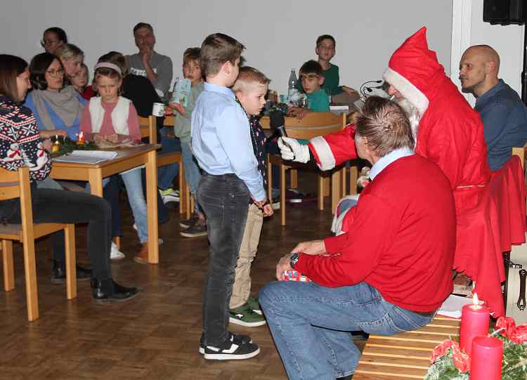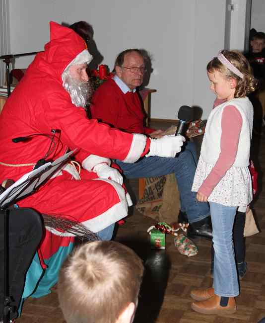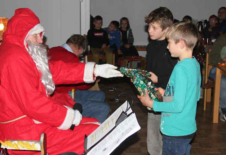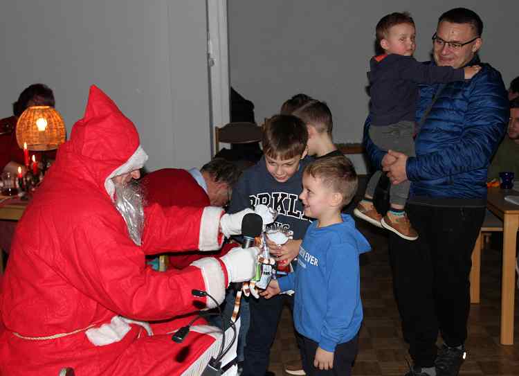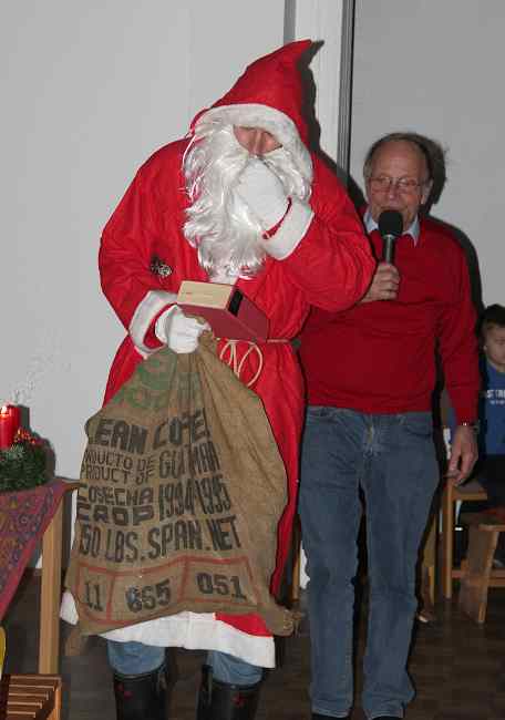 Mit dabei hatte der Nikolaus einen großen Sack mit Geschenken für die Kleinen und die Großen, auch das Jahrbuch war dabei mit all den guten und schlechten Eintragungen des laufenden Jahres. Doch es waren keine Ermahnungen, die der gute alte Mann vorzulesen hatte. Einige Kinder sagten Gedichte auf, sangen ein kurzes Lied. Kräftiger Beifall für diese Darbietungen war der Lohn für diese Beiträge und es gab natürlich ein Geschenk aus dem Sack.