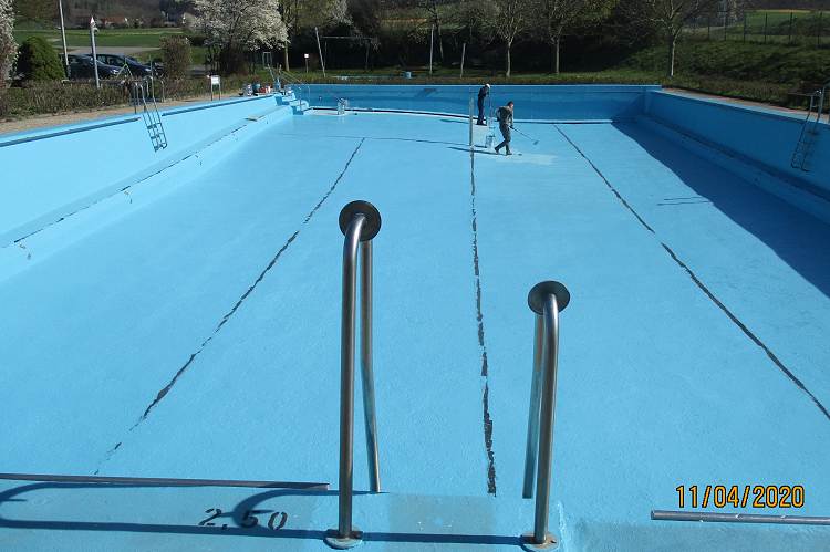 Als nächstes werden wir die Trennstriche aufbringen, die Farbe muss austrocknen und dann wird Wasser eingelassen und die Umwälzanlage mit Hilfe eines Technikers in Betrieb genommen und die Chlorgasanlage gewartet. Dann muss das Schwimmbad aus technischen und betrieblichen Gründen mit dem niedrigsten Aufwand betrieben werden. Dieses Vorgehen wird derzeit auch von vielen umliegenden Freibädern so praktiziert.