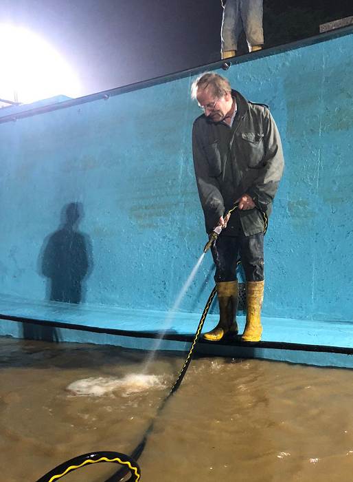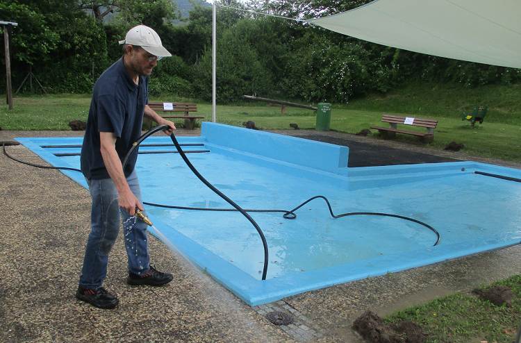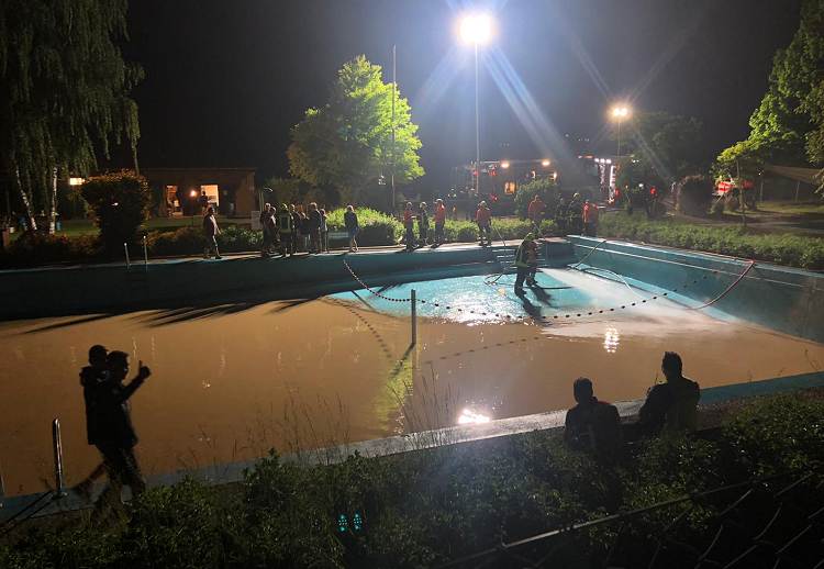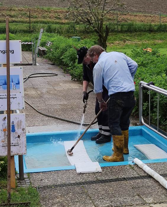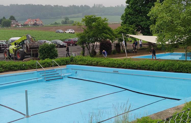 leider müssen wir den Saisonstart wieder verschieben, denn die Überschwemmungen haben alle Eröffnungspläne am 6.Juni zunichte gemacht. Das ist sehr bitter und traurig, aber die Welle der Solidarität durch unzählige Helfer noch am Samstagabend und die ganze Nacht und am Sonntagvormittag, die tolle Hilfe von der Feuerwehr Haddessen und dem THW Hameln und dem DRK LK Hameln-Pyrmont haben dazu geführt, dass am Sonntagnachmittag der größte Schaden bereits beseitigt war. Am Montag Nachmittag haben wir uns noch um den Lagerfeuerplatz und den Gruppenzeltplatz gekümmert, am Dienstag konnten wir mit dem Techniker die Schwallwasserpumpe wieder starten, Rohre und Filter spülen und ab 16.00 Uhr neues Wasser einlassen.