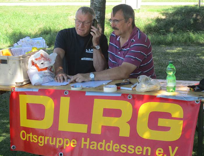 Der Wetterbericht war super für den Tag: Strahlender Sonnenschein, blauer Himmel, bis 28 Grad warm, Wind aus Ost/Nord-Ost. Bereits beim Aufbau der Boote und Verladen des gesamten Materials auf unsern Bus und Anhänger mussten wir im Süntelbad Haddessen auf die Badegäste Rücksicht nehmen und den Zeitplan ein wenig verschieben. Auch galt es noch das zu trocknende Material vom DLRG-Spielfest, das 1 Woche vorher im Süntelbad total verregnet war und getrocknet werden mußte, einzupacken und zu verstauen. Wie immer , keine Langeweile im Süntelbad Haddessen.