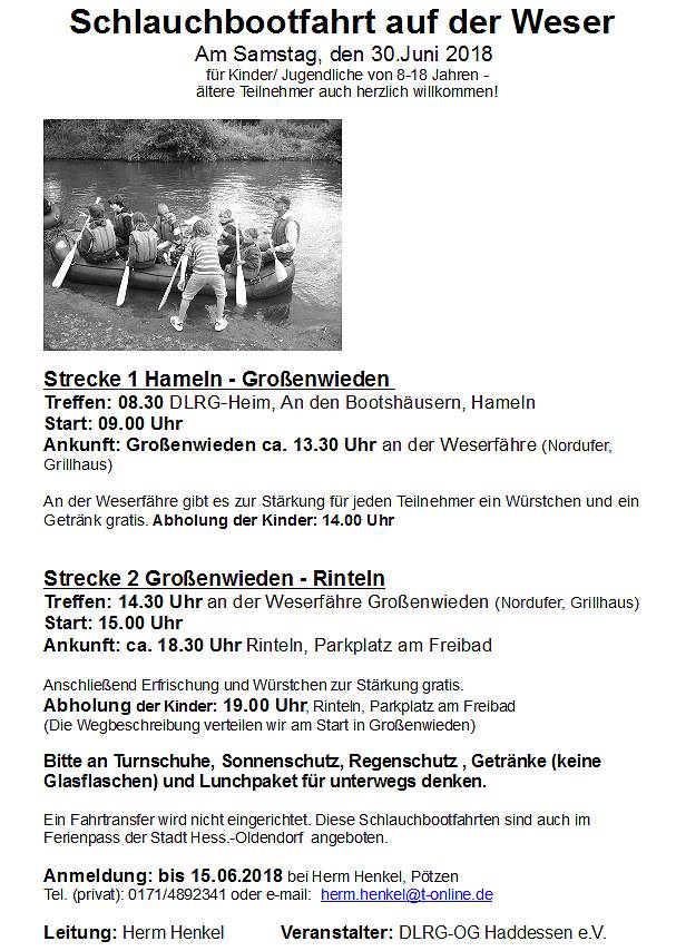 Im Rahmen der Aktion Ferienpass der Hess.-Oldendorf fand am Samstag, den 30. Juni 2018 die Schlauchbootfahrt auf der Weser statt.
