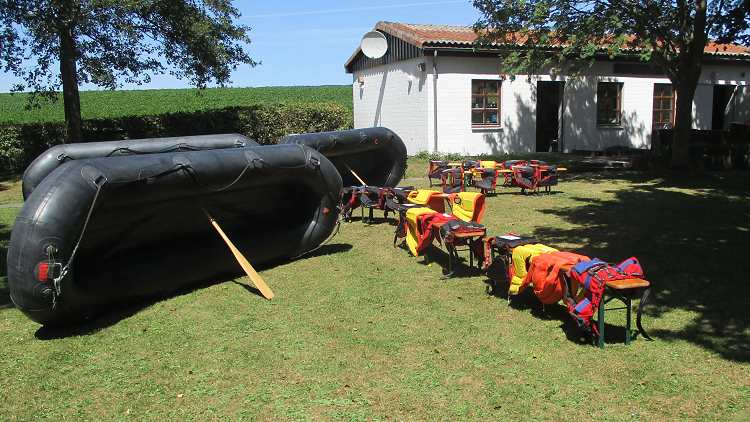 Die Wettervorhersage war durchwachsen, leichter Regen. Also durchaus machbar für eine Weser-Schlauchboottour. Bereits am Freitag, den 15. Juli 22 wurden im Süntelbad Haddessen am DLRG-Heim 2 Boote aufgebaut, ein weiteres Boot verpackt verladen und das gesamte Material einschließlich Schwimmwesten und Tischen und Bänken und Küchenmaterial auf den DLRG-Anhänger und den DLRG-Bus verteilt.