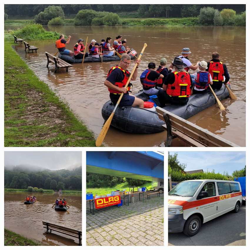 DLRG - Schlauchbootfahrt 2024 auf der Weser: Hochwasser und sommerliche Temperaturen sorgten für spannende und abwechslungsreiche Tour