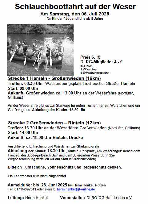 Im Rahmen der Aktion Ferienpass der Stadtjugendpflege der Stadt Hess. Oldendorf fand am Samstag, den 05. Juli 2025, die Schlauchbootfahrt auf der Weser statt.