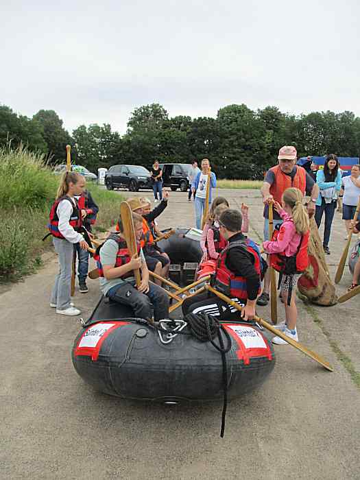 vermittelt, und die TeilnehmerInnen vertrieben sich die Zeit mit Paddeln, Dösen, Ballspielen, Lieder singen und Lunchpaket essen. In Großenwieden um