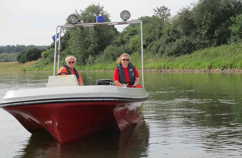 DLRG-Ortsgruppe Hess.-Oldendorf. Das Boot wurde gesteuert von Rolf Schneider und vormittags dazu als Rettungsschwimmerin an Bord Birgit Maduka und