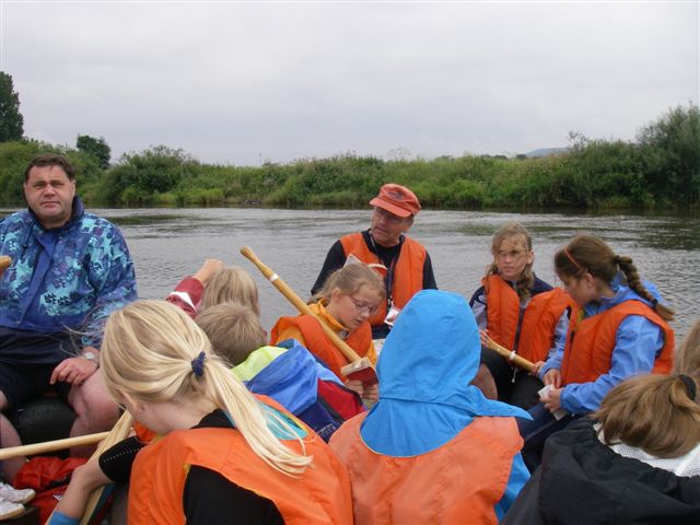 Ein Regenschauer auf der Höhe von Emmerthal war unangenehm, tat aber der gesamten Fahrt keinen Abbruch. Auch hier das gleiche Bild wie am Vormittag: Paddeln, sich gemeinsam treiben lassen, gemeinsam Ball spielen oder singen, Infos, Boots und Wasserstraßenkunde wechselten ab.