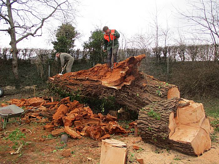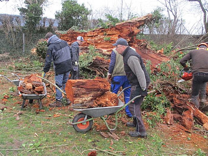 Leider mussten wir aus Gründen der Standsicherheit am Donnerstag, den 28. Februar 2019 die an die 100 Jahre alte Silberweide fällen lassen. Das hat ein Ortstermin mit Fachleuten am 18. Februar ergeben. Am letzten Samstag, den 2. März haben wir uns dann ans Aufarbeiten gemacht. Wird auch noch etwas Zeit beanspruchen. Schade, sehr schade, aber die Sicherheit geht vor. Herm
