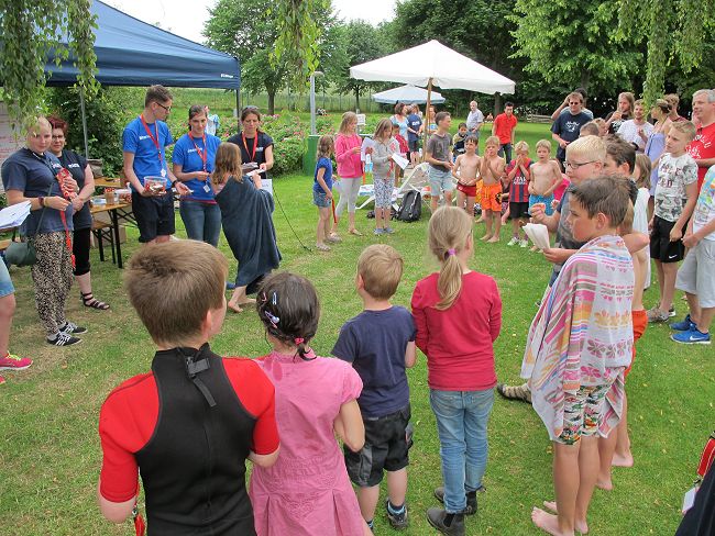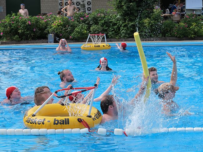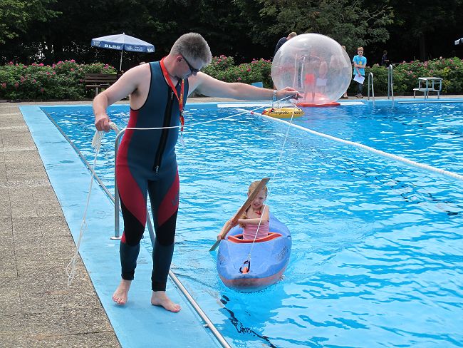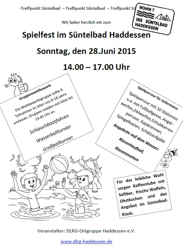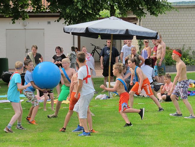 Der Wettergott meinte es gut mit den über 100 Besuchern, die am 28. Juni 2015 zum Spielfest ins Süntelbad Haddessen gekommen waren: Bei 20 Grad C Wassertemperatur und 22 Grad C Lufttemperatur waren das recht frische, aber durchaus zu akzeptierende Randbedingungen für die Spiele im und am Wasser.