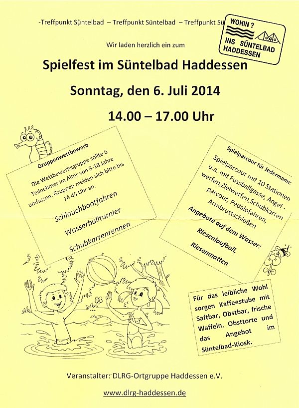 Der Wettergott meinte es gut mit den über 100 Besuchern, die am 6. Juli zum Spielfest ins Süntelbad Haddessen gekommen waren: Bei 23 Grad C Wassertemperatur und 25 Grad C Lufttemperatur waren das ideale Randbedingungen für die Spiele im und am Wasser.
