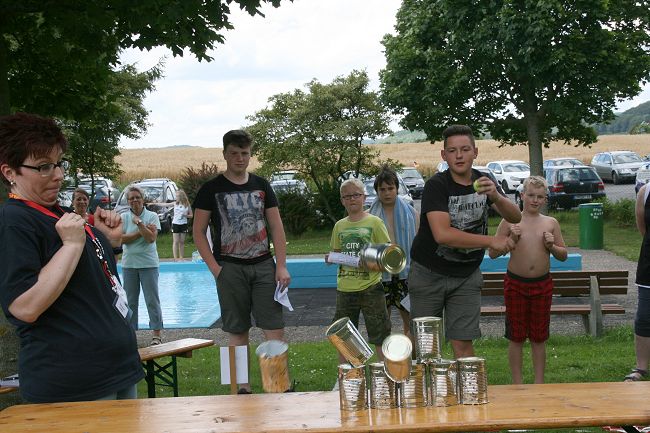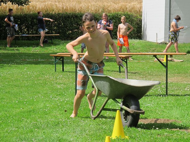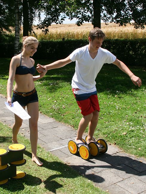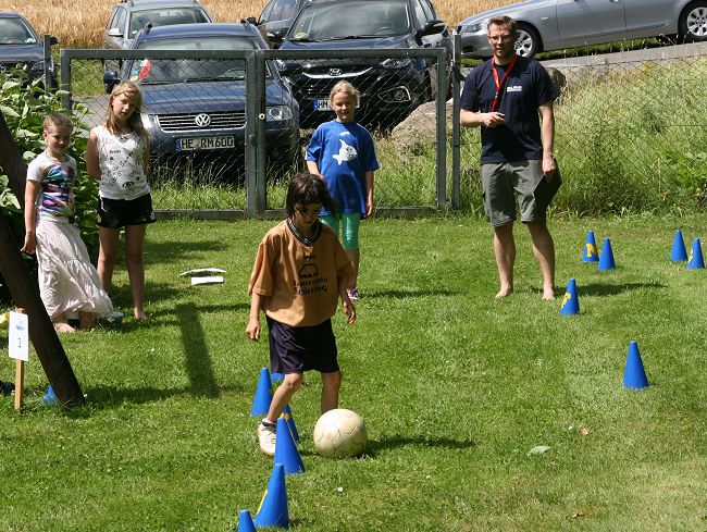 Entsprechend dem sportlichen Ereignis des Jahres, durften die Teilnehmer als erstes einen Fußballparcour absolvieren. Eine weitere Ballaktivität war das Zielwerden auf einen Wasserbasketballkorb. Auch Dosenwerfen und Angelschnurwerfen standen auf dem Programmzettel, ebenso Lkw-Schlauch-rollen, Dartpfeilwerfen, Pedalofahren, Schubkarre über einen Parcour lenken, einen Schwamm ausdrücken und Anzahl von Nektarinen schätzen.