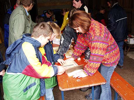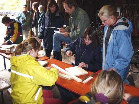 Nach unserer Ankunft in Sunder und dem Kaffeetrinken, verbrachten wir den Nachmittag in der Scheune, beim Bauen der 4 Fledermauskästen. Alle Groß und Klein waren eifrig bei der Sache.