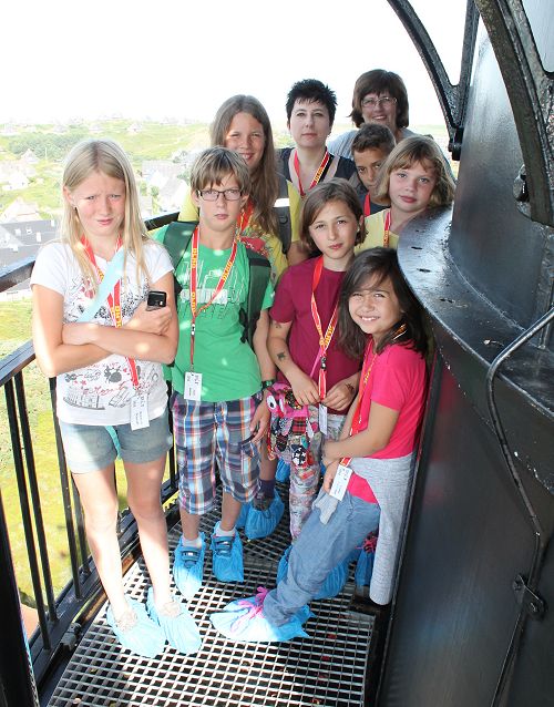 Das erste 'Hightlight', im wahrsten Sinne des Wortes, war die Besichtigung des Leuchtturmes. Hoch über Hörnum konnte man bei bestem Wetter bis Westerland schauen, die südliche Hälfte der Insel von oben betrachten und einen Überblick über die Weite der Nordsee gewinnen. Nebenbei lernten alle Beteiligten, dass der Leuchtturm früher auch als Supermarkt, Baumarkt und Schule genutzt wurde, wobei die Schülerzahl insgesamt unter 10 Schüler blieb. Heute ist im Turm das Standesamt von Hörnum eingerichtet.