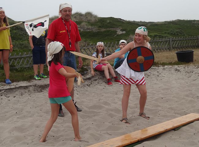 Wie jedes Jahr hatte die Freizeit auch ein Thema, mit dem sich in verschiedenen Phasen beschäftigt wurde. Die Nähe zur Nordsee bietet sich an, um über das Leben der Seeräuber und Piraten mehr zu erfahren. Die Kinder beschäftigten sich emsig mit dem Leben der rauen Gesellen und bereiteten si Stück für Stück den Höhepunkt der Fahrt, das Bergfest inklusiver Piratentag vor.
