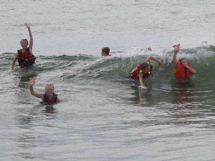 Das Wetter meinte es sehr gut mit uns, so dass wir den Sommer richtig genießen konnten. Während im Binnenland die Tagestemperaturen bis auf unerträgliche 35 Grad Celsius stiegen, war es am Nordseestrand bei 25 Grad C. und leichtem Seewind gut auszuhalten. Die Zeit verging wie im Flug, denn neben dem Baden in der Nordsee und dem Strandleben hatten sich die Betreuer Vieles überlegt: da gab es zu Beginn das traditionelle Chaosspiel und den Kennlernabend mit vielen lustigen gemeinschaftlichen Spielen.