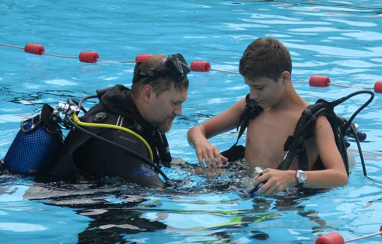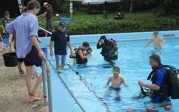 Schnuppertauchen bei kühlem Sommerwetter am Sonntag, den 25.Juli im Süntelbad Haddessen