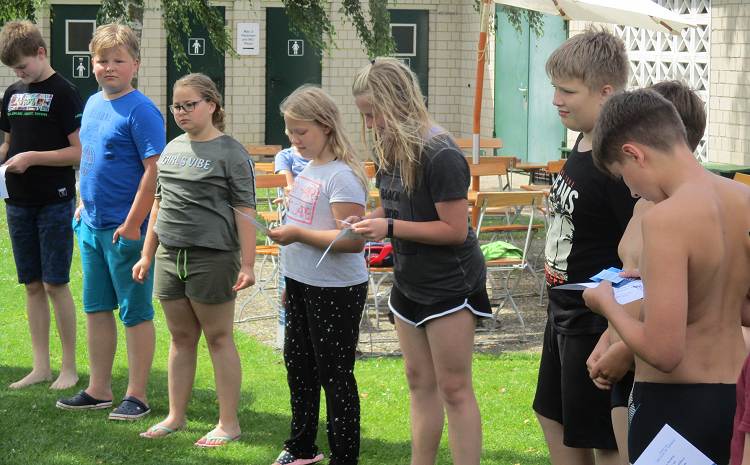 Alle Teilnehmer bekamen eine Bescheinigung und Aufkleber, auch vom Süntelbad Haddessen und der DLRG-Ortsgruppe Haddessen. Selbstverständlich auch weitere Informationen zu Schwimmprüfungen, zu Baderegeln und dem DLRG-Programm in den nächsten Wochen.
