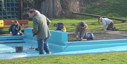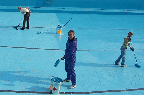 Bisher wurde schon das Regenwasser abgelassen und die Liegewiese geharkt. Auch dem Becken wurde mit Schrubber, Bürste, Hochdruckreiniger und Säure auf den Putz gefühlt. Wenn alles gesäubert ist, werden die Fehlstellen von Maurern bearbeitet - "allerdings gibt es diesmal durch den milden Winter wenig davon". Dann kann gespachtelt und gestrichen werden. Eine Arbeit, die sich bei den meisten großer Beliebtheit erfreut, "weil man sieht, das was passiert", wie Henkel meint. Ebenso sollen Pergola und die Kabinen einen neuen Anstrich bekommen, ein Teil der Außenwand muss erneuert werden.