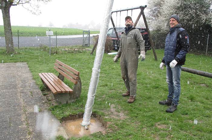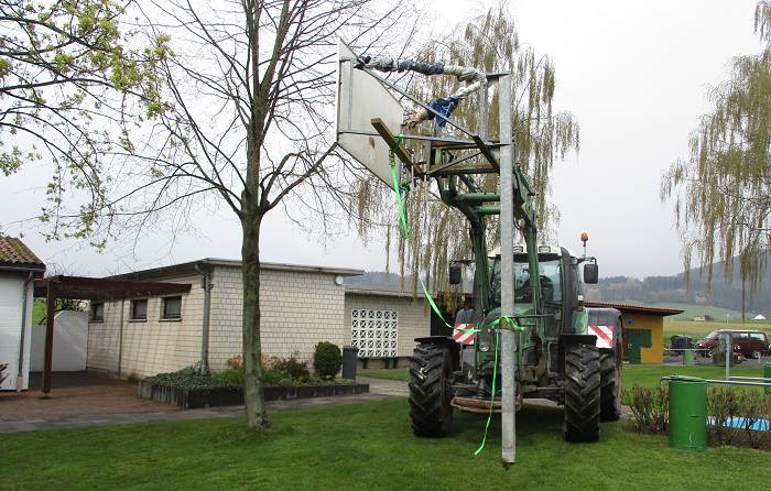Bereits ein Tag nach dem offiziellen Workcamp, am Sa, den 13. April wurde u.a. der Basketballkorb neu aufgestellt, das nur mit Hilfe von Timm Reineke mit seinem Traktor möglich war. Der neue attraktivere Platz ist am Rande der Liegewiese und des Volleyball-Rasenplatzes. Ferner wurden die Masten für das Sonnensegel geliefert und eingesetzt. In den nächsten Wochen kommt dann das Sonnensegel, um für das Planschbecken für Sonnenschutz zu sorgen.