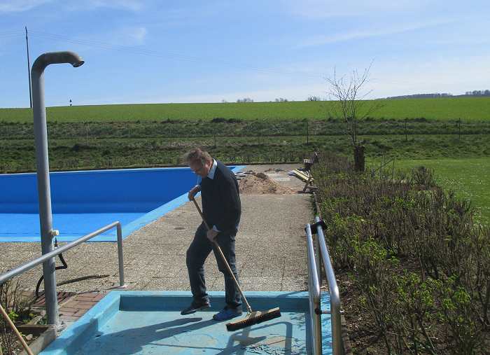 Mit dem Workcamp ist der Grundstein für die Herrichtung des Freibades bis zu Saisonbeginn am Sonntag, dem 15. Mai 2022 gelegt worden. In den nächsten Wochen werden noch die Plattenwege und die Heckenbereiche weiter gejätet, Trennlinien im Schwimmbecken gezogen, Markierungen auf den Beckenrändern erneuert, die Sitzbänke im Schwimmbadbereich und rund um den Lagerfeuerplatz gestrichen. Ab Ende April soll das Schwimmbecken mit Wasser gefüllt werden und in der ersten Maiwoche wird die Umwälzanlage hochgefahren. Wenn der Wettergott mitspielt, werden die anstehenden Arbeiten noch zu schaffen sein. Alle Betroffenen sind da optimistisch. In den letzten Wochen wurde von weiteren Helfern außerdem die Sandkiste erneuert, der Boden im Planschbecken erneuert, 2 neue Sitzbereiche gpflastert, zwei Stellflächen für Großliegen geschaffen und der Materialraum neu geordnet. Derzeit wird noch der Schwimmbeckenüberlauf erneuert.