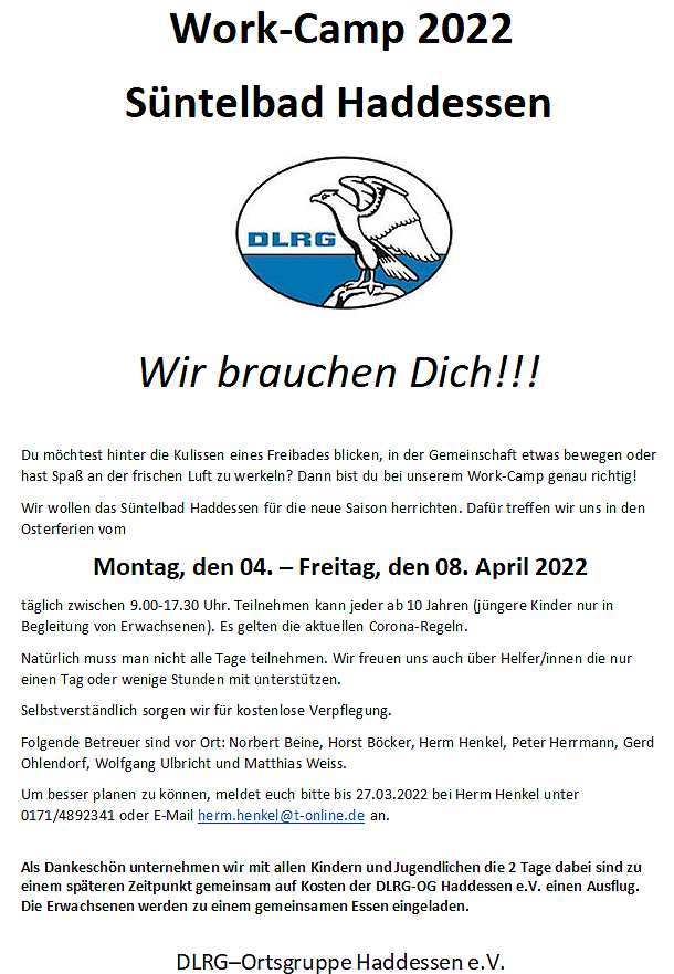 Erfolgreiches Workcamp 2022 der DLRG - Ortsgruppe Haddessen im Süntelbad Haddessen - trotz witterungsbedingter Unterbrechung..