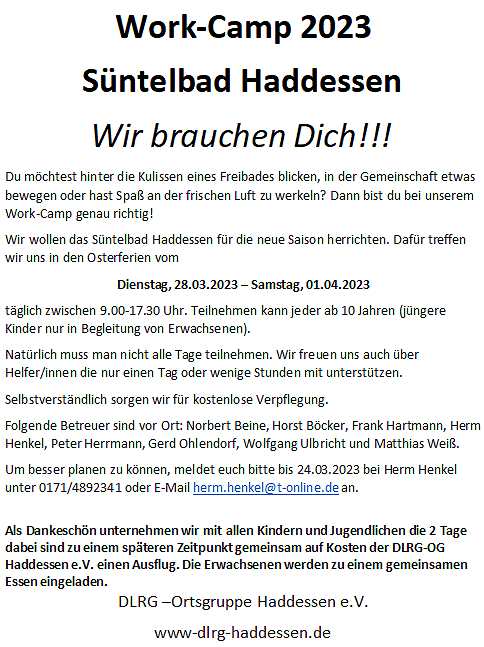 Erfolgreiches Workcamp 2023 der DLRG - Ortsgruppe Haddessen im Süntelbad Haddessen - trotz wechselhafter Witterung
