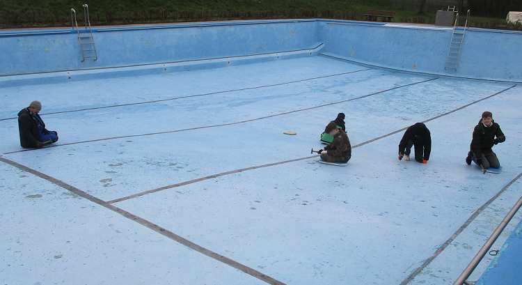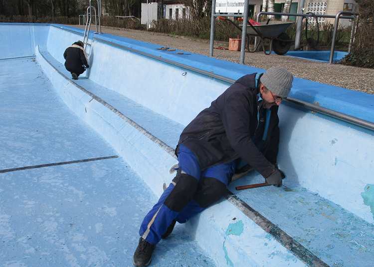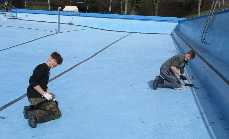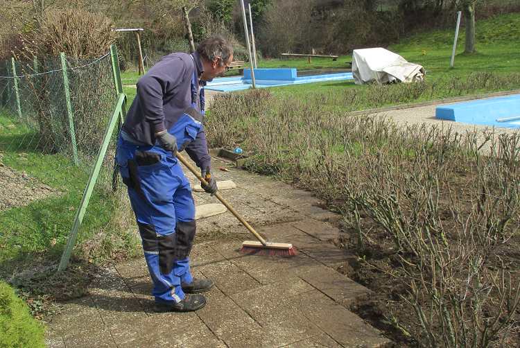 Mit dem Workcamp ist der Grundstein für die Herrichtung des Freibades bis zu Saisonbeginn am Sonntag, den 14. Mai 2022 gelegt worden. In den nächsten Tagen und Wochen müssen das große Schwimmbecken, das Planschbecken und die beiden Außenduschen gestrichen werden. Ferner müssen weitere Heckenbereiche gejätet, Trennlinien im Schwimmbecken gezogen, Markierungen auf den Beckenrändern erneuert, und die Sitzbänke im Schwimmbadbereich und rund um den Lagerfeuerplatz gestrichen werden. Ab Ende April soll das Schwimmbecken mit Wasser gefüllt und in der ersten Maiwoche die Umwälzanlage hochgefahren werden. Wenn der Wettergott mitspielt, werden die anstehenden Arbeiten noch zu schaffen sein. Alle Betroffenen sind da optimistisch. In den letzten Wochen wurde von weiteren Helfern eine befahrbare Gosse auf dem Parkplatz errichtet und derzeit wird noch ein Erdwall zur Ableitung von starkem Niederschlagwasser entlang des Zaunes auf dem Parkplatz errichtet.