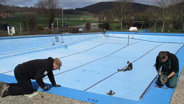 Für 5 Tage haben sich insgesamt 17 Kinder, Jugendliche und Erwachsene im Süntelbad Haddessen eingefunden, um gemeinsam das Süntelbad Haddessen für die Saison 2023 herzurichten. So konnten am Dienstag, den 28. März die Arbeiten beginnen und das fortgesetzt werden, was bereits ab den 4. März 2023 jeden Samstag durchgeführt worden war. Bereits bei den vergangenen Arbeitseinsätzen waren die Frostsicherungsbalken in das Sommerlager zurücktransportiert worden, das Schwimmbeckenwasser abgelassen und das Schwimmbecken mit Hochdruckreiniger und Schrubber gereinigt worden.